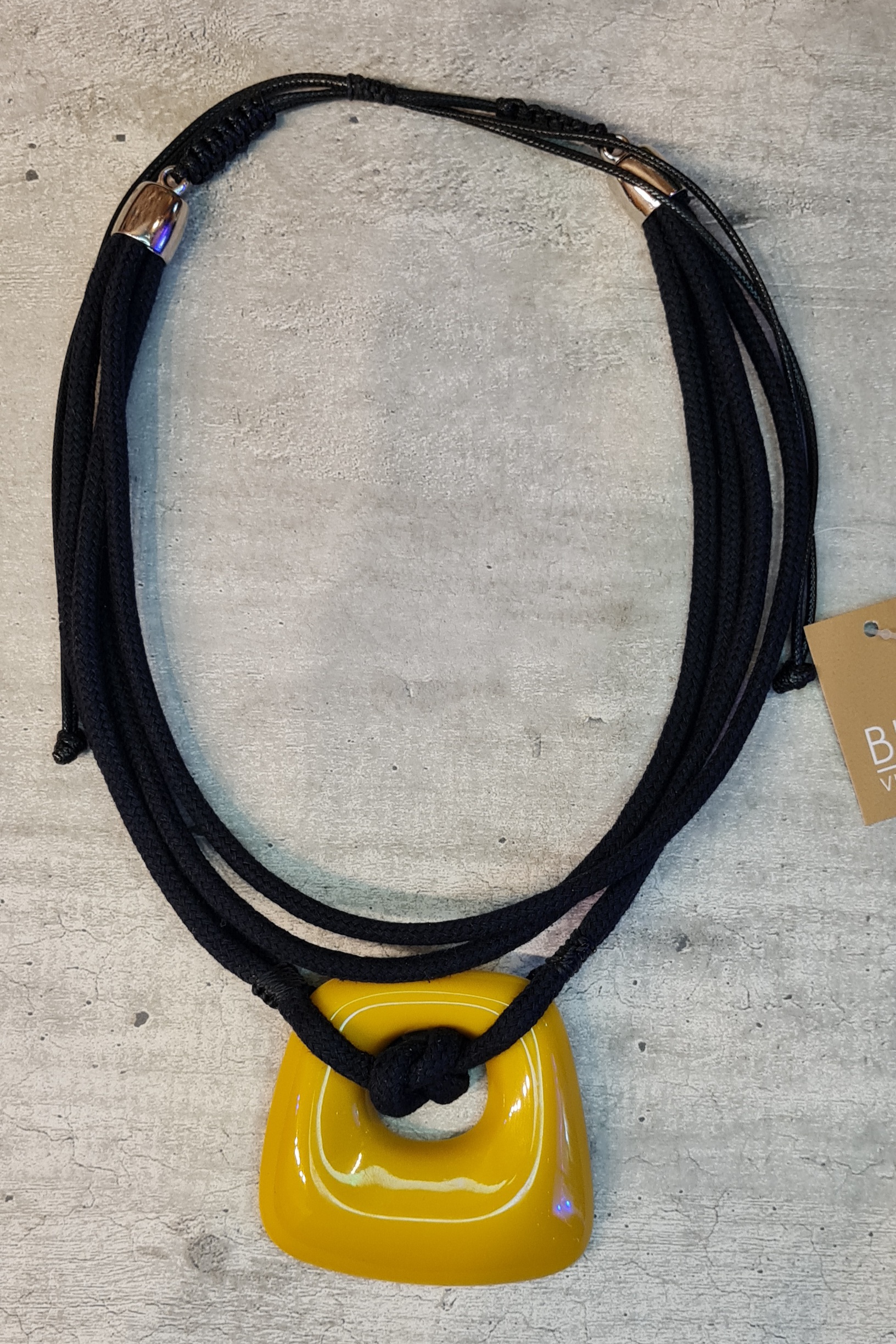Clar com cordão de algodão e 1 peça grande de resina mostarda quadrada.