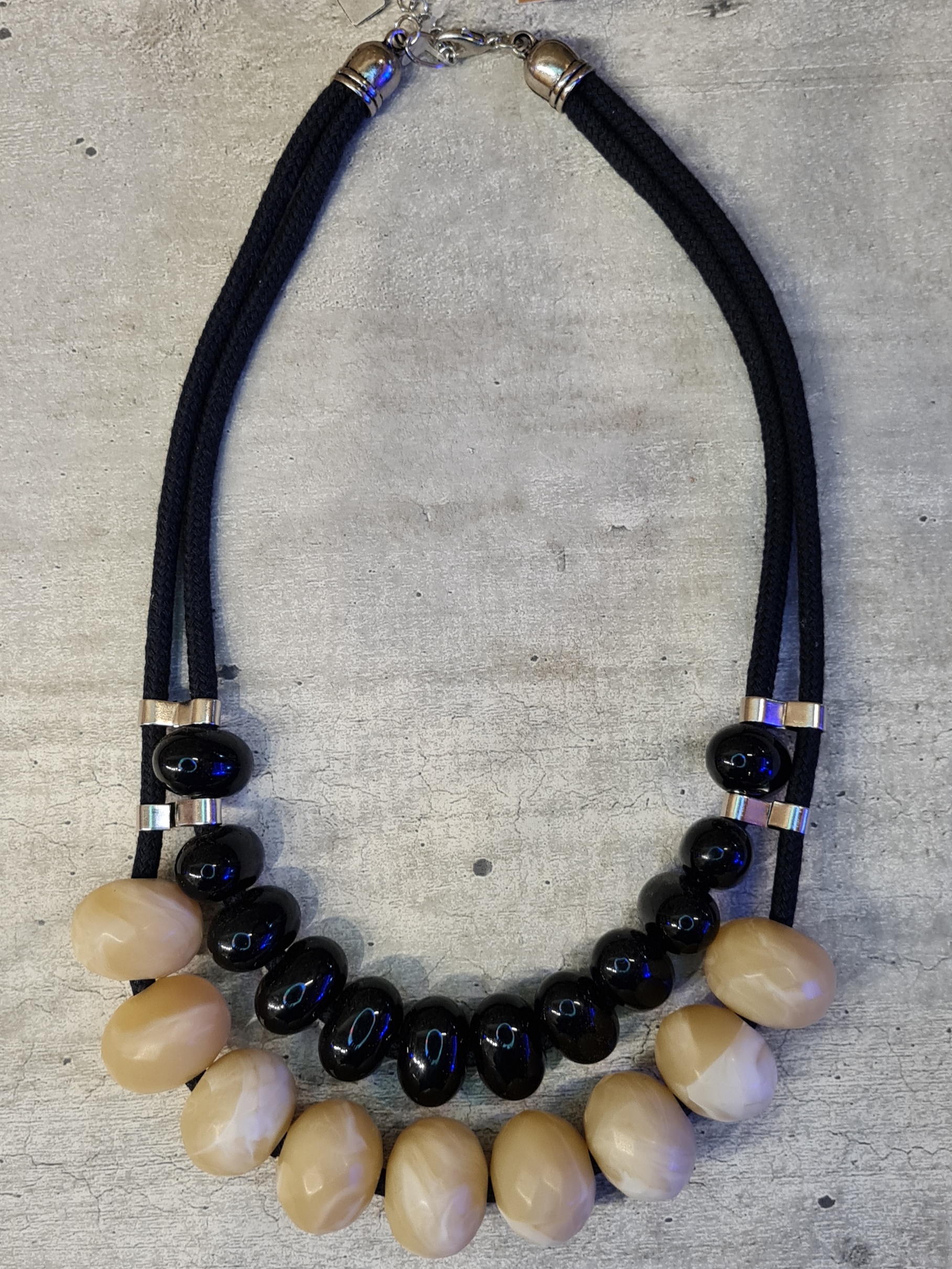 Colar 2 voltas com cordão de algodão e peças de resina.