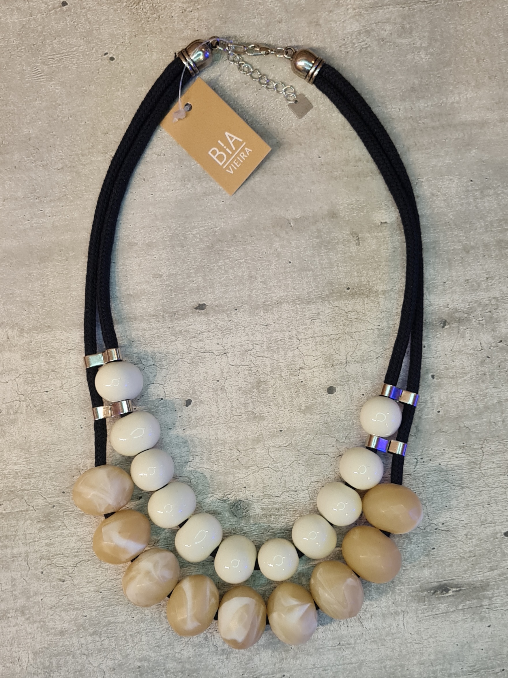 Colar 2 voltas com cordão de algodão e peças de resina.